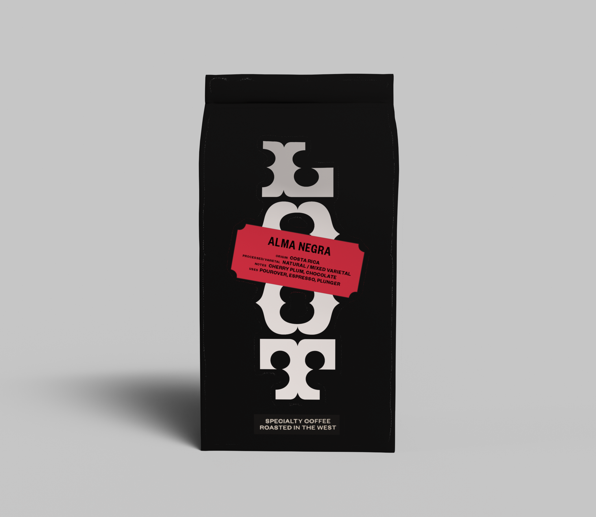 This lot is produced using their signature Alma Negra process. Fresh cherries are dried in a greenhouse for 2–3 days, then moved between open sun during the day and greenhouse drying at night for 20–30 days, followed by a 60-day resting period. The result is a richly layered cup, with concentrated sweetness, with intense cherry flavour, plum and layers of choclolate on the finish.